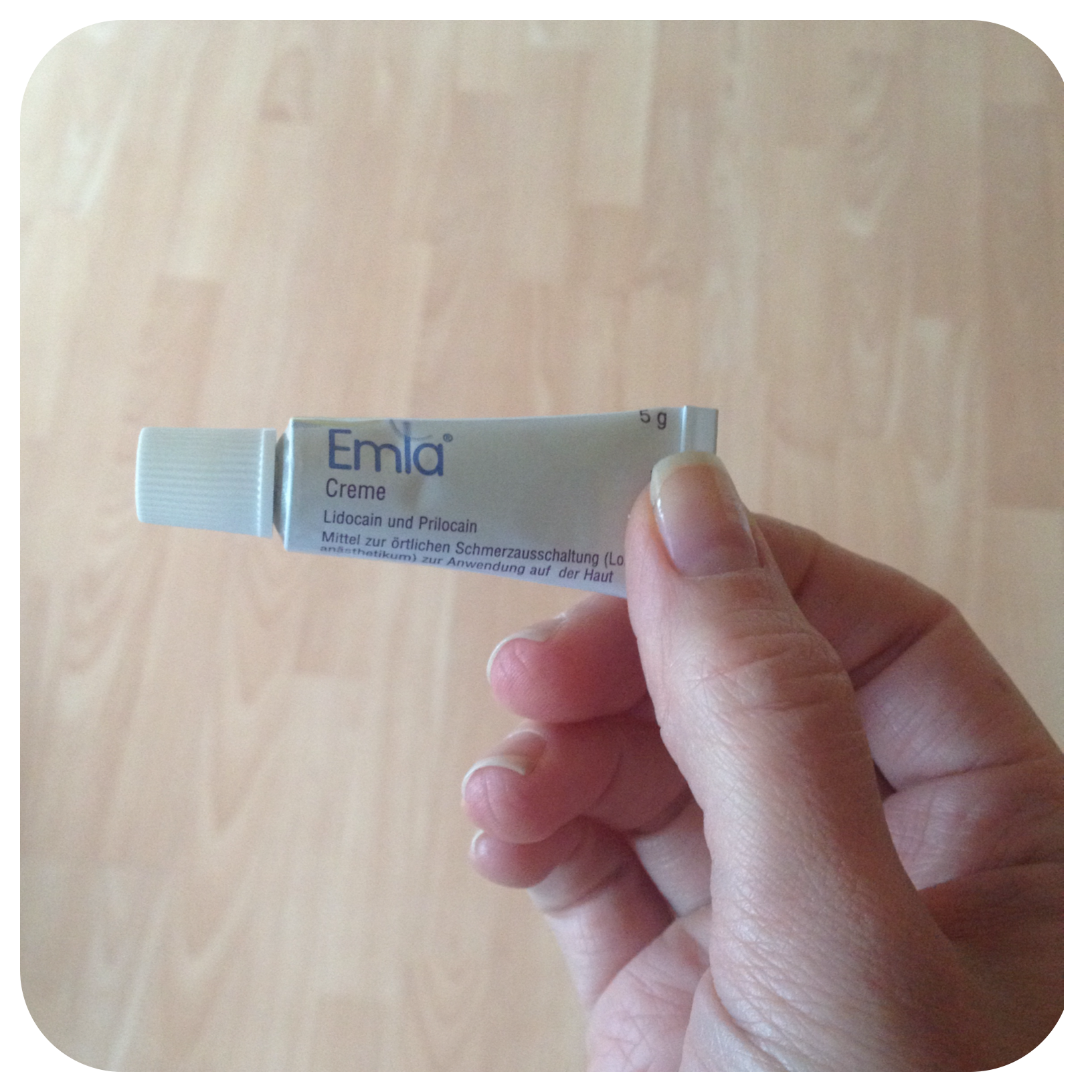 Also 3. Chemo heute. Man bekommt bei der Chemo ein sogenanntes EMLA-Pflaster, was man auf den Port klebt. Auf diesem Pflaster ist eine Creme (EMLA), womit die Haut betäubt wird und der Einstich für die Infusionen nicht ganz so doll weh tut. Da ich eine Pflasterallergie habe, hatte ich bei meiner 2. Chemo eine rot juckende Haut vom Pflaster… also Creme gekauft. Die war auch total günstig…: